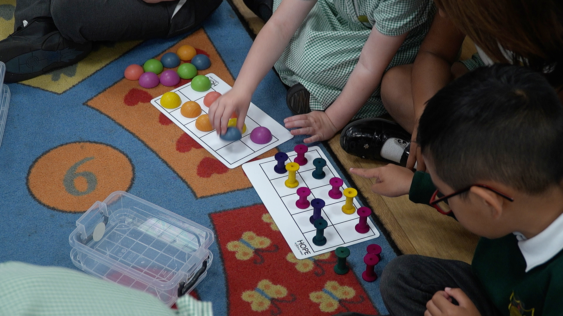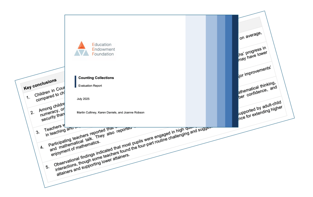 Teachers use the four-part Counting Collections routine in weekly sessions and make the Counting Collection library available in provision.